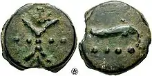 - ↑ Boyne, William (1968). A manual of Roman coins. p. 13.