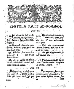 ![]() Romans 11:33–12:5 on Tischendorf's edition of Codex Carolinus (Monumenta, page 155). | |