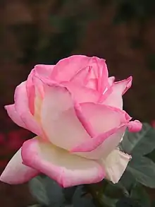 'Princesse de Monaco' (aka 'Princess of Monaco') is a blend hybrid tea rose cultivar bred in France by Marie-Louise Meilland and introduced in 1981. It is dedicated to Princess Grace of Monaco (1929-1982), who was President of Salon de la Rose's Jury in Monaco in 1981. Its parents were two hybrid tea cultivars, 'Ambassador' (Meilland, 1977) x Peace (Meilland, 1935).[1]