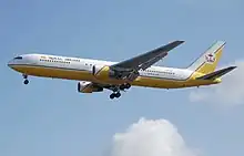 Royal Brunei Airlines Boeing 767-300ER (V8-RBK) landing. This particular aircraft was leased to Vietnam Airlines during the mid- to late-1990s[11]