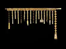 Also attached to the girdle is the Yopae which is 22.5 to 73.5 centimetres in length. This ornament is a chain of thirteen oval-like and quadrangle-like gold plates.