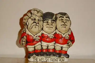 With the introduction of specialised players like hooker George Travers,[13] the WFU could no longer choose the 'best players' to represent Wales, they needed to think tactically and choose people who could do a specific job on the pitch. This period of Welsh rugby would see the grip of the 'Big Four' clubs providing the bulk of national players, slip slightly. The WFU still tended to turn to the likes of Swansea and Newport to supply the skillful back players and usually kept club half-back pairings together such as Jones and Owen of Swansea. But it was the introduction of the 'Rhondda Forward' which saw men who worked day in day out in the coal, iron and tin mines enter the Welsh front row.[14] Chosen for their strength and aggressive tackling, players such as Dai 'Tarw' Jones from Treherbert and Dai Evans from Penygraig added muscle to the front row.