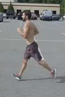 Recent research into various forms of running has focused on the differences in the potential injury risks and shock absorption capabilities between heel and mid/forefoot footstrikes. It has been shown that heel striking is generally associated with higher rates of injury and impact due to inefficient shock absorption and inefficient biomechanical compensations for these forces.[24] This is due to pressures from a heel strike traveling through bones for shock absorption rather than being absorbed by muscles. Since bones cannot disperse forces easily, the forces are transmitted to other parts of the body, including ligaments, joints, and bones in the rest of the lower extremities up to the lower back.[37] This causes the body to use abnormal compensatory motions in an attempt to avoid serious bone injuries.[38] These compensations include internal rotation of the tibia, knee, and hip joints. Excessive compensation over time has been linked to a higher risk of injuries in those joints and the muscles involved in those motions.[30] Conversely, a mid/forefoot strike has been associated with greater efficiency and lower injury risk due to the triceps surae being used as a lever system to absorb forces with the muscles eccentrically rather than through the bone.[24] Landing with a mid/forefoot strike has also been shown to properly attenuate shock and allow the triceps surae to aid in propulsion via reflexive plantarflexion after stretching to absorb ground contact forces.[29][39] Thus a mid/forefoot strike may aid in propulsion. However, even among elite athletes, there are variations in self-selected footstrike types.[40] This is especially true in longer distance events, where there is a prevalence of heel strikers.[41] There does tend however to be a greater percentage of mid/forefoot striking runners in the elite fields, particularly in the faster racers and the winning individuals or groups.[36] While one could attribute the faster speeds of elite runners compared to recreational runners with similar footstrikes to physiological differences, the hip, and joints have been left out of the equation for proper propulsion. This raises the question of how heel-striking elite distance runners can keep up such high paces with a supposedly inefficient and injurious foot strike technique.
