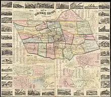 An 1864 map of Schuylkill County, Pennsylvania, showing Rush Township (in green on the top right) prior to major partitions; Mahoney Township (in yellow to the left of Rush) was part of Rush until 1849.