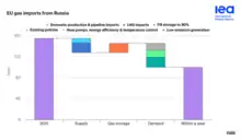 In response to the invasion of Ukraine by Russia, the European Commission and International Energy Agency presented a plan to reduce gas imports from Russia by two thirds within a year, and completely by 2030.[9][10]