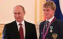 Vladimir Putin and a 2012 Russian CP football Paralympian.