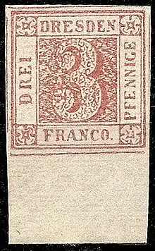 The Sachsen 3 Pfennige red, commonly called Sachsendreier, issued on 29 June 1850 and valid from 1 July 1850 until 31 December 1867, was the first postage stamp of the Kingdom of Saxony, making Saxony the second among the German States (after the Kingdom of Bavaria) to issue postage stamps.