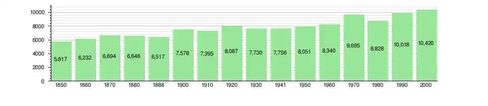 Saint-Maurice has a population (as of December 2020) of 14,102.[1] Most of the population (as of 2000) speaks French (9,391 or 90.1%) as their first language, Italian is the second most common (232 or 2.2%) and German is the third (206 or 2.0%). There are 2 people who speak Romansh.[5]