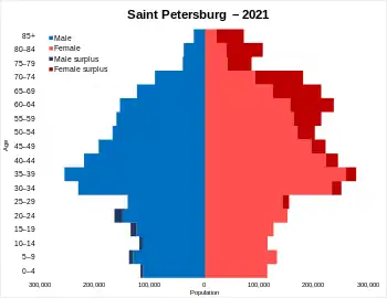 Saint Petersburg,[lower-alpha 1] formerly known as Petrograd (1914–1924) and later Leningrad (1924–1991; see below), is the second-largest city in Russia after Moscow. It is situated on the River Neva, at the head of the Gulf of Finland on the Baltic Sea. The city had a population of roughly 5.6 million residents as of 2021.[3] Saint Petersburg is the fourth-most populous city in Europe, the most populous city on the Baltic Sea, and the world's northernmost city of more than 1 million residents. As Russia's Imperial capital, and a historically strategic port, it is governed as a federal city.