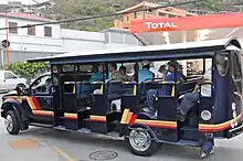 The island has many regular taxis from compact size to large vans, as well as open-air, covered trucks called "safaris" with bench seats. The latter usually operate only between high-traffic points, e.g., cruise-ship terminals at Havensight and Crown Bay and downtown Charlotte Amalie.