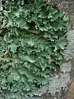 Parmotrema stuppeum (left) and Parmotrema subisidiosum (right) are two foliose lichens that contain salazinic acid.[15]