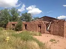 San Miguel del Vado is about 35 kilometres (22 mi) downstream from the Pecos Pueblo, the easternmost settlement of the Pueblo Indians in the 16th century when Spanish explorers first visited the area. Spanish settlements in New Mexico, dating from as early as 1598, were located near the Rio Grande.[1] Spanish expansion was hindered by constant warfare with the surrounding Comanche, Apache, Navajo, and Ute Indians. In the 1780s the Spanish made peace with the Comanche, who thereafter aided them against the Apache, reducing, but not eliminating, the threat to the Spanish settlements and making it possible for the Spanish to expand eastward toward the Great Plains.[2]