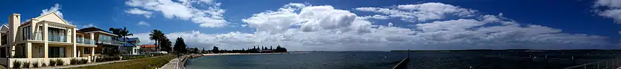 Sandringham is a quiet residential suburb on the western shore of Botany Bay, at the mouth of the Georges River. Cook Park runs along the eastern and southern border and the beach stretches from Dolls Point to Sandringham Bay. The Georges River Sailing Club sits on the foreshore. A small group of shops is located at the intersection of Clareville Avenue and Russell Avenue, on the border with Sans Souci and Sandringham.