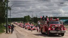Highway 155 was begun in 1947 as a development road. It reached Buffalo Narrows in 1957 where a ferry was needed to cross the Kisis Channel. The road closely followed the path of the old wagon trail established by the Hudson's Bay Company.[4] The official opening of Highway 155 from Green Lake to Buffalo Narrows was held in August 1963 in Green Lake. The old trail to La Loche was rebuilt soon after to become part of Highway 155.