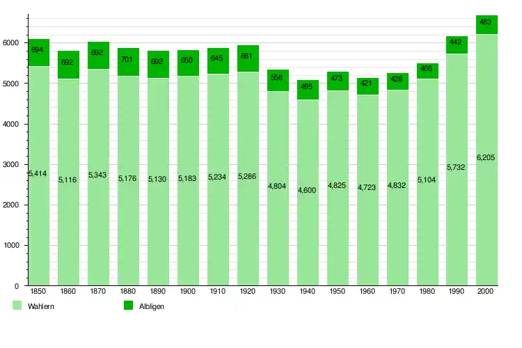 - ↑ Federal Statistical Office STAT-TAB Bevölkerungsentwicklung nach Region, 1850-2000 Archived 2012-03-17 at the Wayback Machine (in German) accessed 29 January 2011