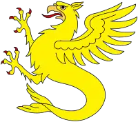 Today, the sea-griffin if used in various municipal coats of arms in Pomeranian and West Pomeranian Voivodeships in northern Poland. It include the cities of Darłowo,[8] Łeba,[9] Sianów,[10] and Sławno,[11] as well as the coat of arms of the counties of Sławno,[12] and Tuchola,[13] and the gminas (municipalities) of Gniewino,[14] Potęgowo,[15] Sławno,[16] Trzebielino,[17] and Tuchomie.[18] It is also present in the coat of arms of commune of Trouville-la-Haule in Normandy, France.[19]