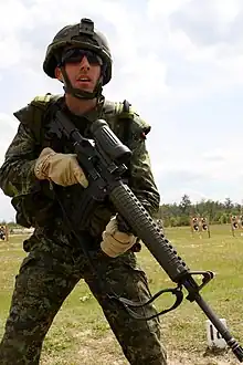 A service rifle or standard-issue rifle is a rifle a military issues to its personnel, typically to its regular infantry. In modern militaries, this is generally a versatile and rugged assault rifle or battle rifle, suitable for use in nearly all environments and effective in most combat situations. Almost all modern militaries are issued service pistols as sidearms to accompany their service rifles. The term can also be used to describe weapons issued by non-military forces, such as law enforcement or paramilitaries.