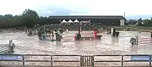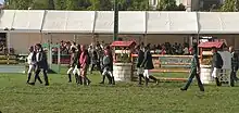 Rules have evolved since then, with different national federations having different classes and rules.[2] The international governing body for most major show jumping competitions is the Fédération Équestre Internationale (FEI).[3] The two most common types of penalties are jumping penalties and time penalties.