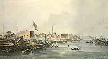 Many ships, munitions and various riches (gold, silver, pearls and precious stones) went to the victors. Several thousand women, children, Jews, Armenians and Moldavians settled in the city. Of the entire garrison only one man escaped.[18] In total, the Ottoman forces had more than 26,000 casualties with the almost whole armed force of the stronghold being killed.[2] Those who were wounded were captured. The siege hardships and the stubborn Ottoman resistance irritated their victor to the last degree: it gave no mercy to anyone; everyone died under the blows of the furious soldiers, — both the stubbornly defensive and the weaponless, even women and children.[19][20] Even the officers could not keep people from aimless bloodshed and blind rage.[20] According to the promise given in advance by Suvorov, the city was given to the soldiers for 3 days, — this was the custom of that time; therefore, on the next and on the third day, more cases of violence and murder continued, and on the first night, the crackle of rifle and pistol shots rang out until the morning. The robbery took on terrible proportions. Soldiers broke into houses and seized all kinds of property, — rich clothes, precious weapons, jewelry; merchants' shops were smashed, and over their owners' corpses the new masters sought the spoils; many houses stood dilapidated, their inhabitants lay in blood, screams for help, cries of despair, the wheezing of the dying were heard everywhere; the conquered city presented a terrifying sight.[21] Russian forces suffered only 4,330 casualties, out of which 1,815 were killed.[2] The participants of the Ochakov storming considered it a "toy" compared to the Izmail assault, and Suvorov himself later said that