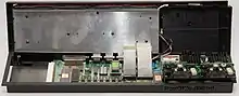 The result of a three-year collaboration between Sinclair Research, ICL and British Telecom, the One Per Desk adds a telephone handset at one end of the keyboard, and rudimentary Computer-Telephony Integration (CTI) software.[24] This machine interested a number of high-profile business customers, including certain divisions of the former UK Customs and Excise Department, but its success was generally limited. In the late 1980s they were used in bingo halls to allow a country-wide networked bingo game.[25]
