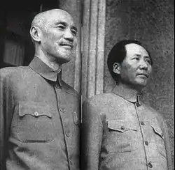 In the Asian theatre of World War II, Chiang Kai-shek of the KMT was kidnapped by one of his own officers and forced to ally with the Communist Mao Zedong of the CCP as reluctant co-belligerents to expel Imperial Japan from China.
