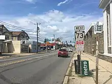 In the 1950s, PA 73 was routed onto the one-way pair of Robbins Street eastbound and Levick Street westbound between US 13 (Frankford Avenue) and the Tacony–Palmyra Bridge; the US 422 concurrency was removed as well. Also, the route was realigned to use Washington Lane between Church Road and Township Line Road. Between Reading and Mount Penn, US 422/PA 73 was shifted to the one-way pair of Perkiomen Avenue eastbound and Mineral Spring Road westbound while PA 73 was designated concurrent with westbound US 422 Alt. on Chestnut Street between Bingaman Street and US 422 in Reading.[22] By 1966, PA 73 was realigned at Oley to follow its current alignment west to PA 61 in Leesport, replacing a portion of PA 383 between east of Leesport and Maiden Creek. The former alignment of PA 73 became PA 625 between PA 23 in Blue Ball and US 222 (now US 222 Bus.) in Reading with most of the remainder between Reading and Oley becoming unnumbered except along the concurrencies with US 222 and US 422 Bus.[23][24] In the 1960s, PA 73 was rerouted at US 13 (Frankford Avenue) to follow Cottman Avenue, the one-way pair of Princeton Avenue eastbound and Cottman Avenue westbound past Torresdale Avenue, State Road, and New State Road to the Tacony–Palmyra Bridge.[25]