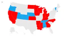 In the United States over 200,000 minors were legally married from 2002 to 2017, with the youngest being only 10 years old. Most were married to adults.[83] Currently 48 US states, as well as D.C. and Puerto Rico, allow marriage of minors as long as there is judicial consent, parental consent or if the minor is pregnant.[84][85] In 2017–2018, several states began passing laws to either restrict child marriage[86][87][88] or ban it altogether.[89]