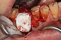 - ↑ Simion M, Scarano A, Gionso L, Piattelli A (1996). "Guided bone regeneration using resorbable and nonresorbable membranes: a comparative histologic study in humans". Int J Oral Maxillofac Implants. 11 (6): 735–42. PMID 8990634.