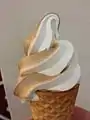 Soft serve, also known as soft ice, is a frozen dessert, similar to ice cream, but softer and less dense due to more air being introduced during freezing. Soft serve has been sold commercially since the late 1930s in the United States.[1]