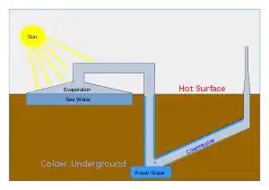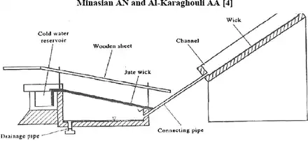 - ↑ Manikandan, V.; Shanmugasundaram, K.; Shanmugan, S.; Janarthanan, B.; Chandrasekaran, J. (April 2013). "Wick type solar stills: A review". Renewable and Sustainable Energy Reviews. 20: 322–335. doi:10.1016/j.rser.2012.11.046.