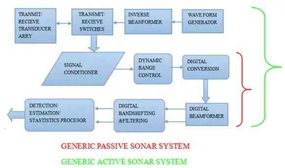 Sonar systems are generally used underwater for range finding and detection. Active sonar emits an acoustic signal, or pulse of sound, into the water. The sound bounces off the target object and returns an “echo” to the sonar transducer. Unlike active sonar, passive sonar does not emit its own signal, which is an advantage for military vessels. But passive sonar cannot measure the range of an object unless it is used in conjunction with other passive listening devices. Multiple passive sonar devices must be used for triangulation of a sound source. No matter whether active sonar or passive sonar, the information included in the reflected signal can not be used without technical signal processing. To extract the useful information from the mixed signal, some steps are taken to transfer the raw acoustic data.