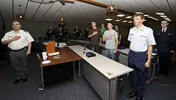 Members of the Civil Air Patrol Rushmore Composite Squadron stand and recite the Pledge of Allegiance during a monthly meeting at Ellsworth Air Force Base.