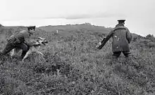 The Border Troops had Landing Assault Manoeuvre Groups (sing. десантно-штурмовая маневренная группа (ДШМГ)). The LAMGs of the KGB's Border Troops were temporary task forces, organised for a period of time by a Border Guard Detachment (пограничный отряд (ПОГО)), the border guard equivalent of an army brigade. The BG detachments formed temporary task forces, equivalent to battalions, for manoeuvre warfare. The land component units were called Motorised Manoeuvre Group (мото-маневренная группа (ммг)) and consisted of 3 or 4 Motorised Manoeuvre Border Outposts (sing. мото-маневренная пограничная застава), the Border Troops equivalent of a company). The 1st MMBO was armed with BMP-1 or BMP-2, the 2nd MMBO was armed with BTR-70 and the 3rd MMBO was armed with BTR-60PB. Each MMBO had 5 BMPs or BTRs. The MMG also had a motorised mortar battery, an anti-tank platoon and additional support units for a total of ca. 300 men. The fire and service support units were motorised with GAZ-66 light trucks.[1] The Landing Assault Manoeuvre Group formed the airmobile component, which operated in concert with the MMGs. While both types of units were commanded by Border Troops Lieutenant-Colonels, with manpower of less than 50 an LAMG number far fewer men than both the Border Troops's MMGs and the Landing Assault Battalions of the Ground Forces. An LAMG consisted of a command element and two Landing Assault Manoeuvre Border Outposts and had the following structure:[2]