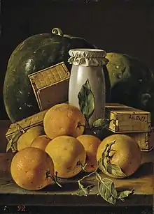 Still Life with Oranges Honey-Jar Boxes of Sweetmeats and Watermelons, by Luis Egidio Meléndez