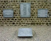 After the war, the organisation was dissolved on 15 January 1946. The official memorial to all those who served in the SOE during the Second World War was unveiled on 13 February 1996, on the wall of the west cloister of Westminster Abbey, by Queen Elizabeth The Queen Mother. A further memorial to SOE's agents was unveiled in October 2009 on the Albert Embankment in London.[3] The Valençay SOE Memorial honours 104 SOE agents who lost their lives while working in France. The Tempsford Memorial was unveiled on 3 December 2013 by Charles, Prince of Wales, in Church End, Tempsford, Bedfordshire, close to the site of former RAF Tempsford.
