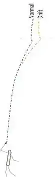Depending on technique, a spin bowler uses either predominant wrist or finger motion to impart spin to the ball around a horizontal axis that is at an oblique angle to the length of the pitch. This sort of spin means it is also possible for the Magnus effect to cause the ball to deviate sideways through the air, before it bounces. Such deviation is called drift.[3] The combination of drift and spin can make the ball's trajectory complex, with a change of direction at the bounce.