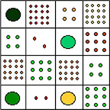 Diagram of a 4'x4' layout showing various planting densities per square foot