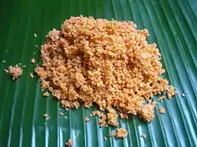 Pittu[5] are cylinders of steamed or roasted rice flour mixed with grated coconut.[6]