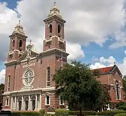 St. Joseph Parish first began to organize in 1813 and was founded as a mission to Assumption Church in Plattenville in 1817.[3] Two years later a small wooden church building was constructed near the current church cemetery. The Rev. Antoine Potini was assigned as St. Joseph's first pastor.[3] It is the oldest Catholic parish in the diocese and many of the other churches were founded from it and served by its priest.[4] The Rev. Charles Menard had a brick church built in 1849, but it was destroyed by a fire in 1916. The relics of Saint Valerie survived the fire and are in the current church in a glass sarcophagus. The present church was begun in 1920 during the pastorate of Msgr. Alexander Barbier. It was completed three years later in the Renaissance Revival style. The first Mass was celebrated on January 25, 1923. The ornamental marble and plaster work was added in 1931 and the final paint scheme was done in 1954.