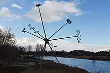A sculpture known as Bloom is featured in the park. it was designed by Michel de Broin