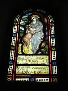 In 1851 the church was said to have seating capacity of "140" with "afternoon attendance: 82" and, in 1879, architect Joseph Clarke undertook further restoration work.[16] This work was commemorated by the addition of a new stained glass window, in the possible Saxon opening, dedicated to Saint Giles which bears the date of the restoration (1879) as well as the name of the vicar, "H. Newport" and church wardens Tom Clements (who was at one time the village postmaster) and "H. Hudson".