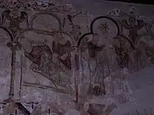 The oldest significant painting is a medallion at the east end of the south aisle. Uncovered in 1967 this has a central design of a cross in the form of an endless knot of rope. The south aisle also has 12th-century pictures of angels and Apostles.[5]