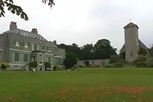 The church mentioned in the Domesday Book was replaced in the mid-13th century[3][4] by the present structure, which is the third[2] church on the site (a grassed area within the grounds of Preston Manor).[4] It consisted of a chancel, nave with no aisles and a tower at the west end with a shallow pyramidal cap (of the type known as a Sussex Cap),[4] corbel table and narrow lancet windows.[3][5] Its main feature of interest was a series of 13th- and 14th-century wall paintings around the chancel arch and the nave, which depicted the Nativity of Jesus, Saint Michael weighing the souls of the dead at the Last Judgment, the murder and martyrdom of Thomas Becket, Doubting Thomas, other saints, and the "Noli me tangere" scene at Jesus's Resurrection.[4][5][6][7][8] They were covered with plaster at the time of the Reformation and were rediscovered in 1830[2][8] by the vicar, Reverend Charles Townsend.[4]