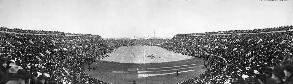 During these decades, parallel stadium developments were taking place in the U.S. The Baker Bowl, a baseball park in Philadelphia that opened in its original form in 1887 but was completely rebuilt in 1895, broke new ground in stadium construction in two major ways. The stadium's second incarnation featured the world's first cantilevered second deck (tier) in a sports venue, and was the first baseball park to use steel and brick for the majority of its construction. Another influential venue was Boston's Harvard Stadium, built in 1903 by Harvard University for its American football team and track and field program. It was the world's first stadium to use concrete-and-steel construction. In 1909, concrete-and-steel construction came to baseball with the opening of Shibe Park in Philadelphia and, a few months later, Forbes Field in Pittsburgh. The latter was the world's first three-tiered sporting venue. The opening of these parks marked the start of the "jewel box" era of park construction. The largest stadium crowd ever was 199,854 people watching the final match of the 1950 World Cup at Rio de Janeiro's Maracanã on 16 July 1950.[17]