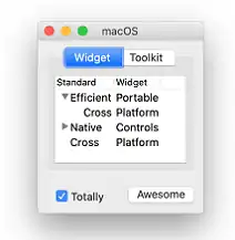 SWT widgets have the same look and feel as native widgets because they often are the same native widgets. This is in contrast to the Swing toolkit where all widgets are emulations of native widgets. In some cases the difference is distinguishable. For example, the macOS tree widget features a subtle animation when a tree is expanded and default buttons have an animated pulsing glow to focus the user's attention on them. The default Swing version of these widgets does not animate.