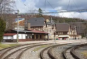 Starý Smokovec railway station (Slovak: Železničná stanica Starý Smokovec) is a junction station in the High Tatras. It serves the ski, tourist and health resort of Starý Smokovec, in the Prešov Region, northeastern Slovakia.