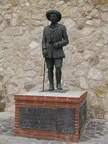 Cast in bronze by Enrique Novo Álvarez, a former lieutenant colonel, it was erected in 1978 with no official ceremony.[2] It had been commissioned days after the dictator's death, and Novo Álvarez won a nationwide competition to receive a tender of 3 million pesetas.[4] The statue was allowed to remain in public on the argument that it depicts Franco as commander of the Spanish foreign legion in the Rif War, over a decade before the Spanish Civil War and his dictatorship; it was maintained by right- and left-wing city councils.[2]