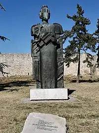 Stefan Lazarević (Serbian Cyrillic: Стефан Лазаревић, c. 1377 – 19 July 1427), also known as Stefan the Tall (Serbian: Стефан Високи, romanized: Stefan Visoki), was a Serbian ruler as prince (1389-1402) and despot (1402-1427).[2][3] He was also a diplomat, legislator, ktetor, patron of the arts, poet and one of the founding members of the Order of the Dragon. The son of Prince Lazar Hrebeljanović, he was regarded as one of the finest knights and military leaders at that time. After the death of his father at Kosovo (1389), he became ruler of Moravian Serbia and ruled with his mother Milica (a Nemanjić), until he reached adulthood in 1393. Stefan led troops in several battles as an Ottoman vassal, until asserting independence after receiving the title of despot from the Byzantines in 1402.[4]
