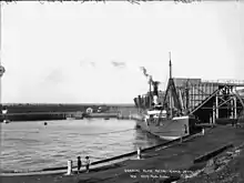 An artificial harbour was constructed in the 1880s,[19] with one breakwater running for 100 yards In a north-easterly direction and another to the south-east for 50 yards—from Cowrie Island—providing an entrance only 100 feet wide, with a depth of six feet of water.[16] The breakwater was extended westward around 1899,[20] to block completely the gap between Cowrie Island and the mainland.