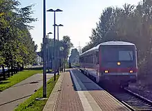 In the 1950s, railcars of class 33.2 based in Landau were used on services between Wörth and Lauterbourg.[18] In the Deutsche Bahn timetable, the section reactivated in 2002 is designated as the Bienwaldbahn and listed under table 677.1. In the timetable of the Karlsruher Verkehrsverbund (Karlsruhe transport association, KVV) and the Verkehrsverbund Rhein-Neckar (Rhine-Neckar transport association, VRN) it is designated with the number R52. The tickets of the KVV and VRN are recognised on the route between Wörth and Lauterbourg. Furthermore, a Rheinland-Pfalz-Ticket can be used the state border to Lauterbourg, but not a Baden-Württemberg-Ticket, a Quer-durchs-Land-Ticket or a Schönes-Wochenende-Ticket. Bombardier Talent (class 643) diesel multiple units are used on the line. On weekdays there are 18 train pairs between 5am and 10pm.
